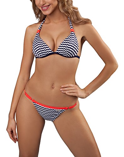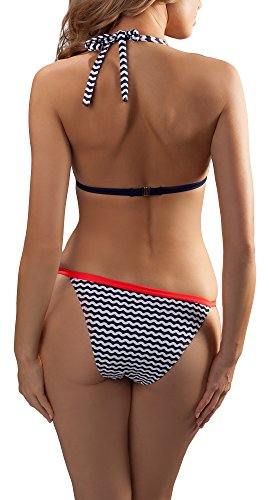 -. Feature : Bikini; Verstärkte Körbchen; Rausnehmbare Push-Up Kissen / Am Hals gebunden; Mit Druckknopf am Rücken; Im Marinestil / Stärker ausgeschnittener Slip, mit Möglichkeit zum Regulieren des Umfangs; BH und Unterteils gefuttert / Hochwertiges italienisches Material; Widerstandsfähig gegen Chlorwasser, Salzwasser und UV-Strahlen (UPF 50+) / In der EU hergestellt