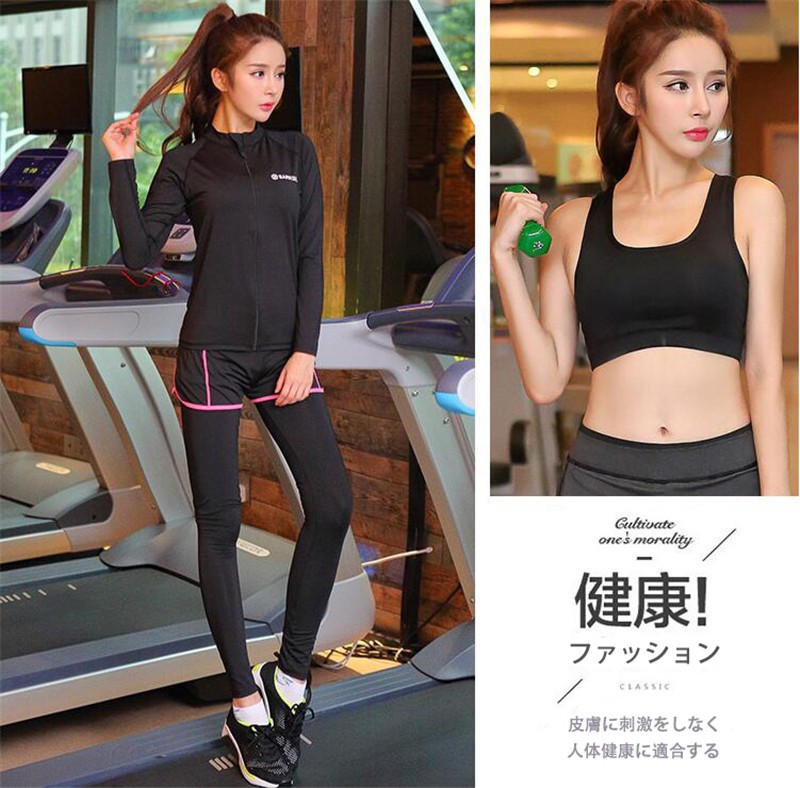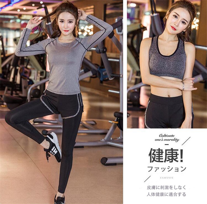 ●商品内容:長袖トップス+Tシャツ+スポーツブラ+パンツ連体レギンス 4点セット
