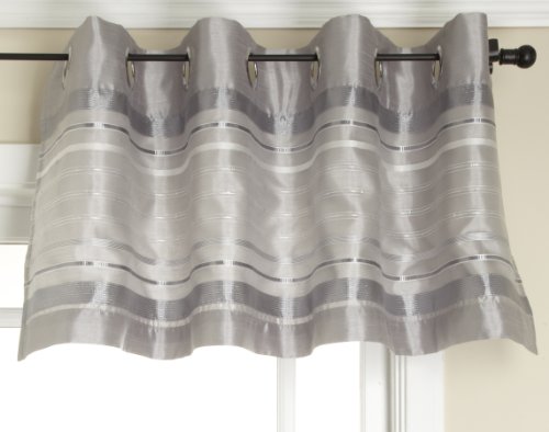 Stylemaster Fiesta Faux Silk Grommet Valance with Sequin Organza Silver, 56-Inch by 18-Inch