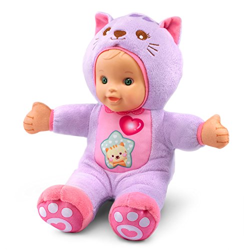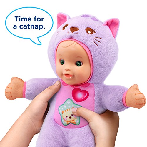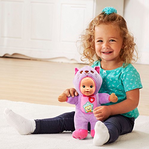 -. Feature : This baby doll dressed up as a Kitty introduces nurturing concepts, role-play and language development as your child pretends to take care of her / Press the kitty's tummy to learn the days of the week, count to five, hear facts about kittens and listen to sing-along songs / Press the light-up button to hear sweet phrases about feelings, silly sound effects and short tunes; sweet songs, rhymes and educational content encourage new vocabulary / Little ones will enjoy playing pretend and caring for the baby doll by responding to her requests; features 30+ songs, melodies, sounds and phrases / Requires 2 AAA batteries (batteries included for demo purposes only, new batteries recommended for regular use); plush doll is intended for ages 12 months and up