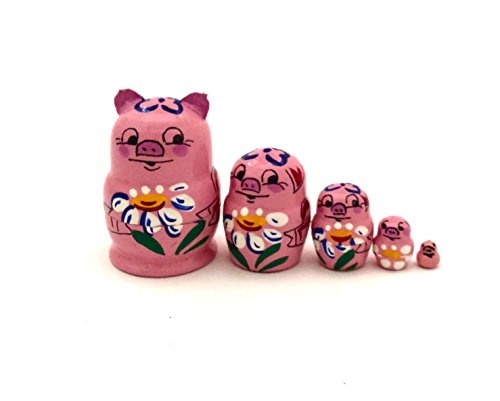 -. Title : 1.25" Tall Happy Pig MINI nesting dolls Russian Hand Carved Hand Painted 5 piece matryoshka Set