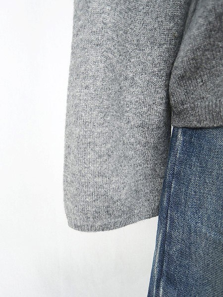 Ladies ブランド- カラーライトグレー メール便不可 コンディション★★★ モデル 素材カシミア100% 表記サイズ- 実寸サイズ 着丈 59.5 cm 身幅 53.5 cm 肩幅 38 cm 袖丈 60.5 cm ※ウエスト・ヒップ以外は平置き採寸