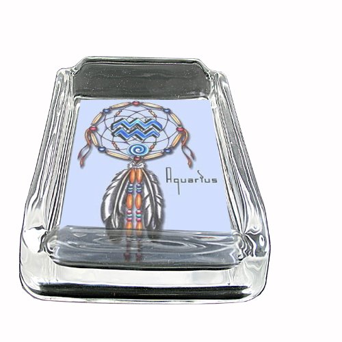 -. Title : Glass Square Ashtray Aquarius Zodiac Dreamcatcher Whiskey D-261