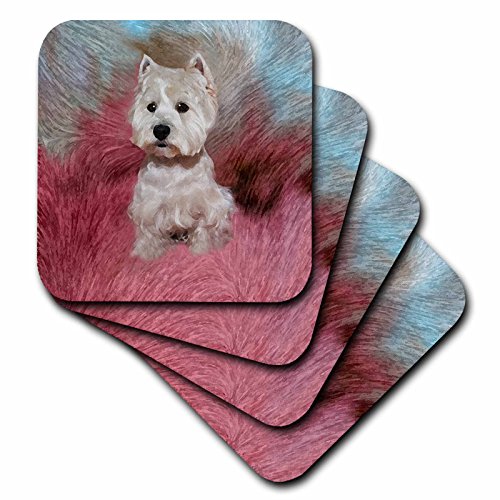 3drose Westie Coaster, Soft, Set of 8