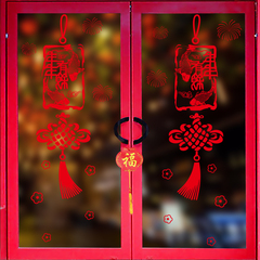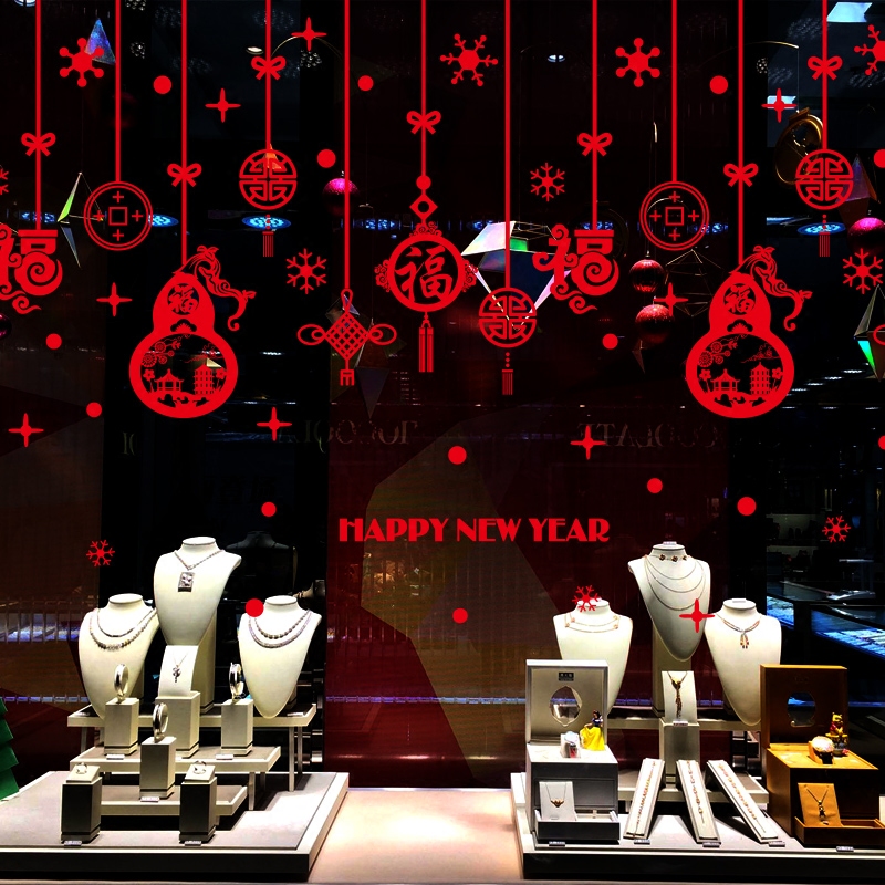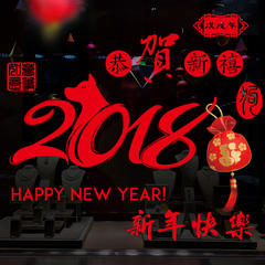 居中2018新年墙贴玻璃贴新年灯笼贴纸贴画新年橱窗玻璃墙贴传统年