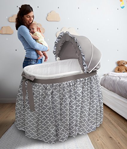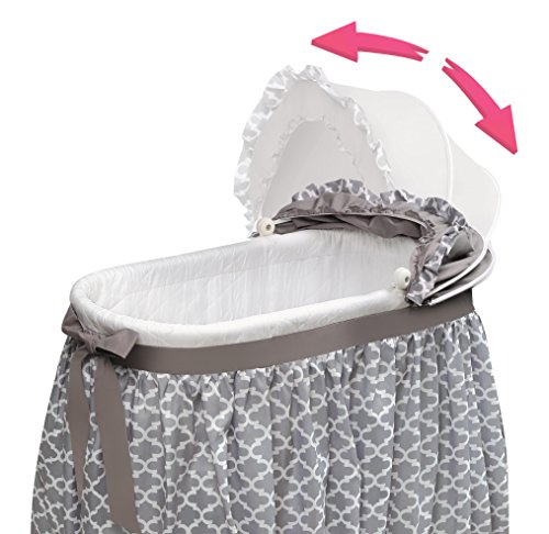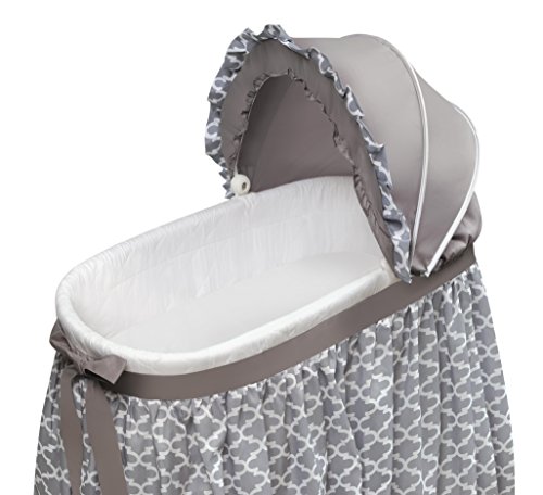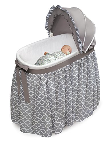 ReleaseDate : 2017-12-13 Studio : Badger Basket Company - DROPSHIP Publisher : Badger Basket Company - DROPSHIP Binding : Baby Product Product Description Badger Basket's lovely Wishes Bassinet comes complete with everything your baby needs for the first few months of sleep. Classic, cozy, and comfortable, it features crisp bedding with a floor-length pleated skirt, finished off with a wide ribbon belt tied into a big bow. Generously sized, adjustable canopy completes they stylish look. The hooded, locking caster wheels can be flipped up to rock the bassinet like a cradle! Convert the bassinet to the cradle position easily - no tools needed. Mesh storage basket beneath the bassinet is handy for feeding and diaper changing necessities and toys. Canopy is easily folded down out of the way to tend to your precious bundle inside. Complete bedding set (hood, fitted sheet, and quilted liner/skirt) and foam pad included. 0