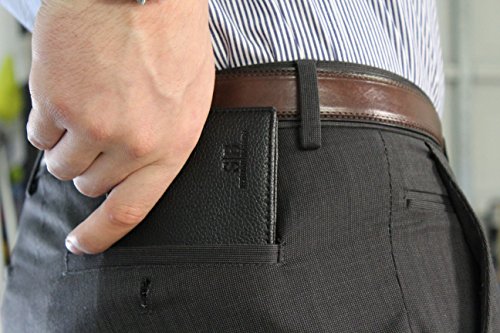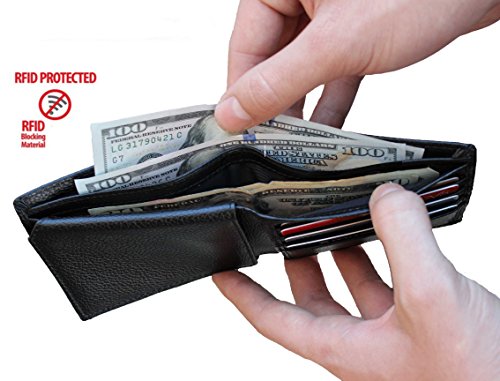 -. Feature : ✔ SAFETY. P.R.IVACY. SECURITY - Our wallets are equipped with advanced RFID SECURE Technology, a unique metal composite, engineered specifically to block 13.56 MHz or higher RFID signals and protect the valuable information stored on RFID chips from unauthorized scans / ✔ FUNCTIONAL FOR YOUR BUSY LIFE - Convenient quick access ID window lets you easily show your ID at the ready. Ten card slots means you can keep all of your important cards with you at all times. The slim profile doesn't bulk up and easily slips in and out of your pocket or purse / ✔ GENUINE LEATHER - Made with the Finest Grain Genuine leather, Wallet Size: 4.5" in. x 4" in. .4" in. / ✔ NO HASSLE MONEY BACK GUARANTEE - We know you'll love our wallet as much as we do, if for any reason you're not 100% SATISFIED, let us know and our customer service team will make things right: full refund or a free replacement, whichever you prefer. / ✔ GIFT BOX - Comes with a high quality gift box that makes it the perfect gift for anyone!