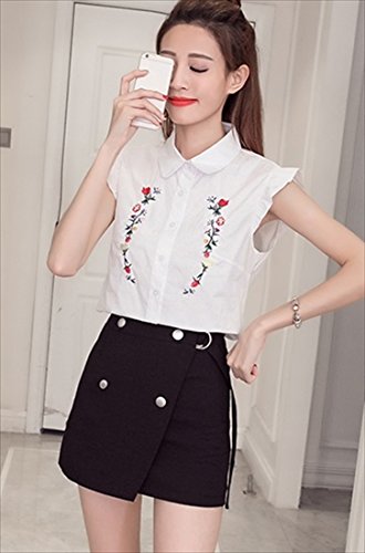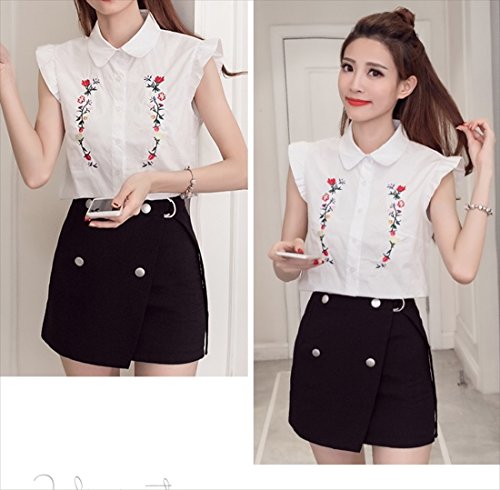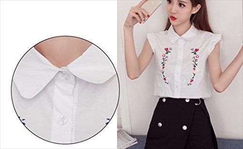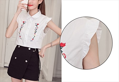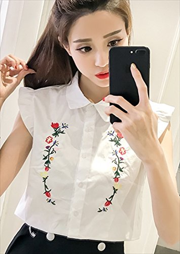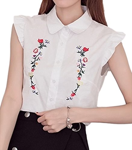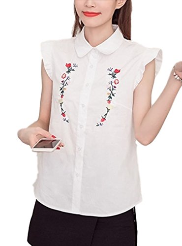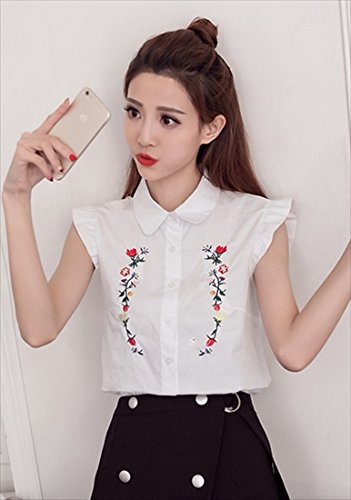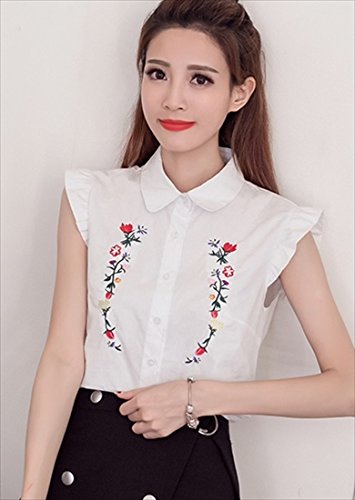 -. Title : (フムフム) fumu fumu レディース トップス シャツ おしゃれ 刺繍 ブラウス ノースリーブ フリル 袖 カワイイ 花柄