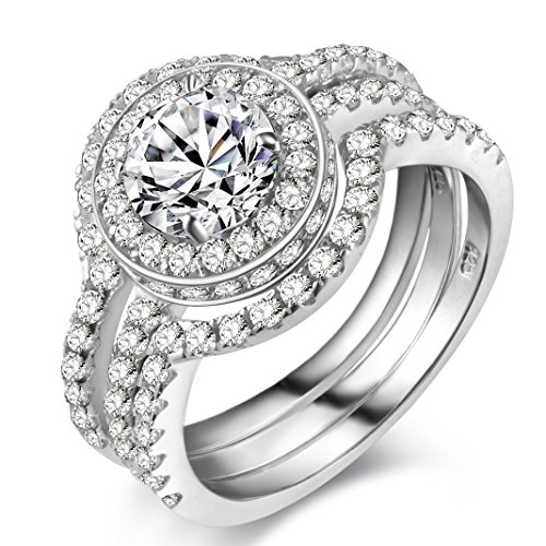 Title : Newshe Jewellery 5ct Triple Round Cz White Gold Plated Engagement Wedding Band Ring Sets Size 10