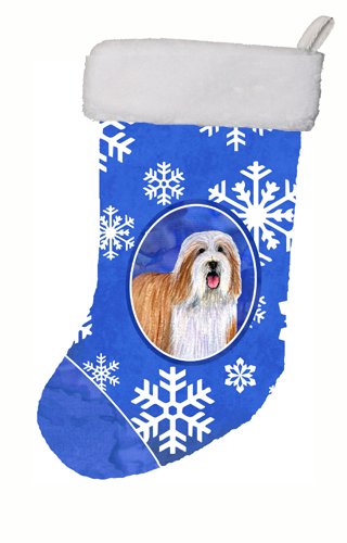 Caroline's Treasures Bearded Collie Winter Snowflakes Holiday Christmas Stocking, 11 x 18", Multicolor