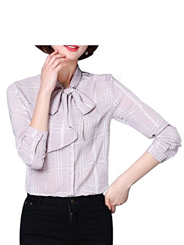 -. Title : レディース ブラウス長袖 シャツ オフィス カジュアル 通勤 清楚 フォーマル フリル 可愛い リボン チェック柄 ラベンダー