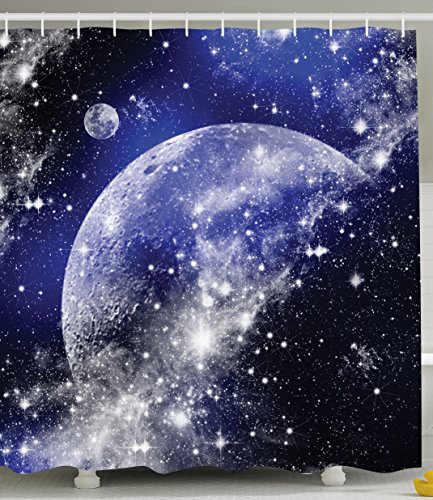 Galaxy Nebula Shower Curtain Full Moon Phase Starry Night Sky Universe Infinity and Space Bathroom Decorations in Apartment Decor for Dorms Blue Navy White