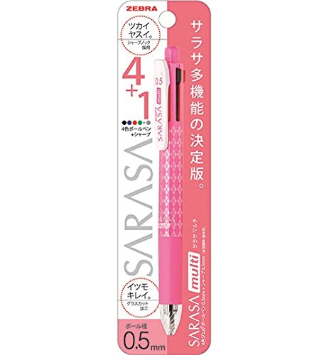 1 X Zebra - Sarasa Multi 0.5 - Four Colors (Black, Red, Blue, Green) Gel Ballpoint Pen 0.5mm + Mechanical Pencil 0.5mm - Pink