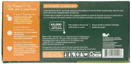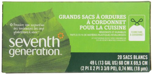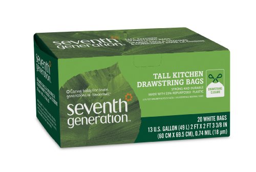 -. Title : Seventh Generation, Drawstring Kitchen Trash Bags 13 gal, 20 count