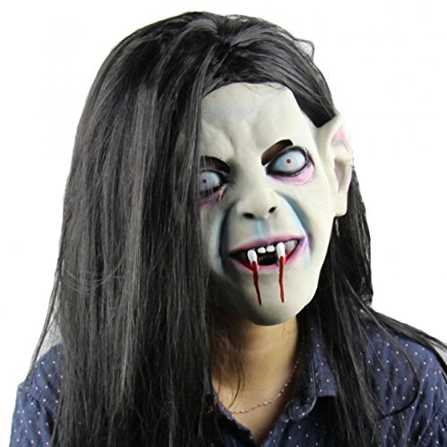 -. Feature : Scary toothy ghost mask for Halloween party / Material: green latex and hair implants. / Roomy enough: easily fitting / Suitable for: all kinds of parties, costume parties, Halloween parties; show, fun activities, ted, slow rock, bars, dance halls, etc. / Care: handwash cold; do not bleach; do not iron