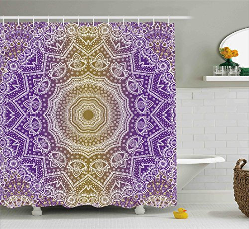 Yellow and Purple Shower Curtain by Ambesonne, Mandala Ombre East Tradition Deep Sacred Mystic Magic in Cosmos Psychic Image, Fabric Bathroom Decor Set with Hooks, 70 Inches, Violet