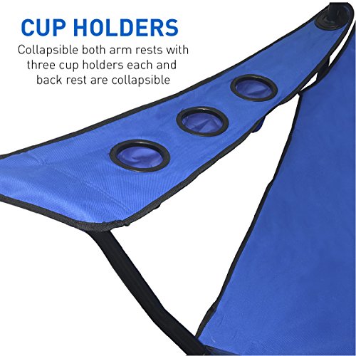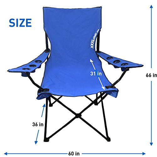 Giant Oversized Big Portable Folding Camping Beach Outdoor Chair with 6 Cup Holders! Fold Compact into Carry Bag