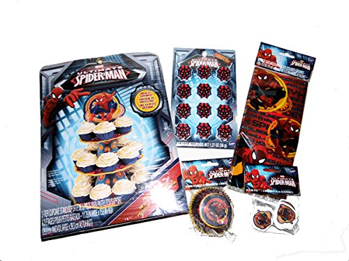 Spiderman Cupcake Birthday Party Supplies -Goodie Favor Bags, Treat Stand, Cupcake Cups, Icing Decorations and Cupcake Pix