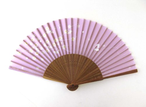 Japanese Silk Handheld Fan, Butterfly with Sakura Cherry Blossoms HF152