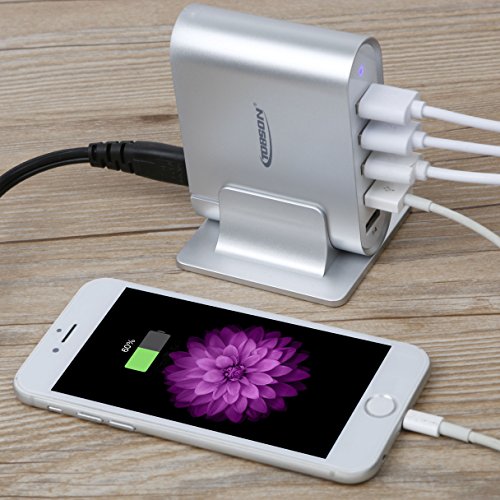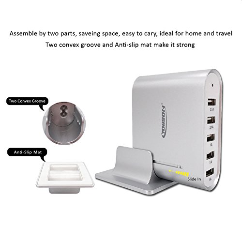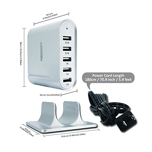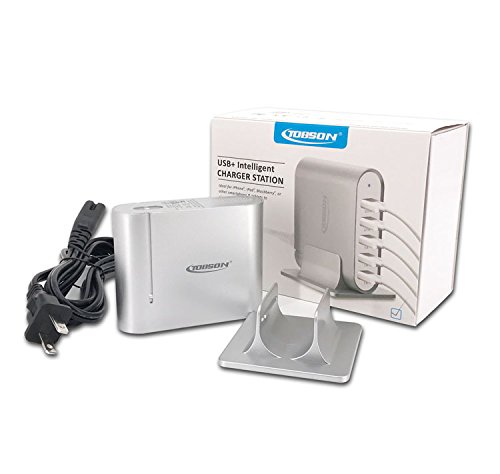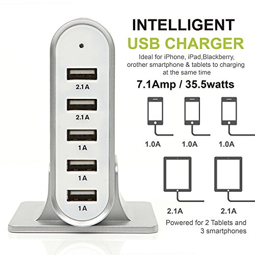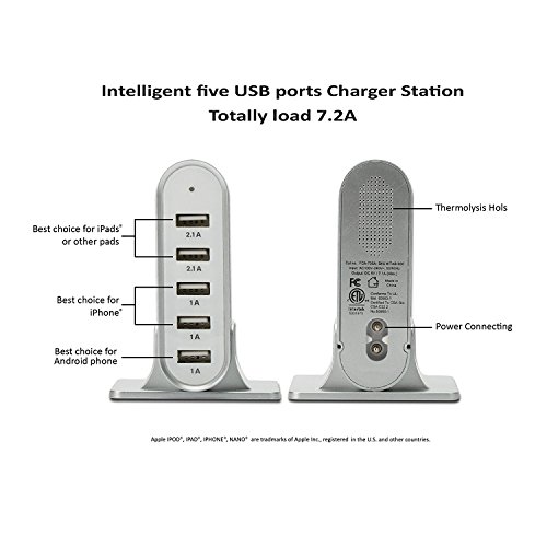 TOBSON 7.2A 5-port USB Charger Desktop Charging Station for iPhone 7 / 6s / Plus,Samsung Galaxy S6, iPad Pro / Air 2 / mini All Mobile Devices (Silver)