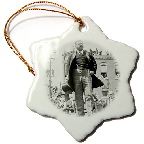 3dRose orn_77392_1 Teddy Roosevelt Speaks 1905-Snowflake Ornament, 3-Inch, Porcelain