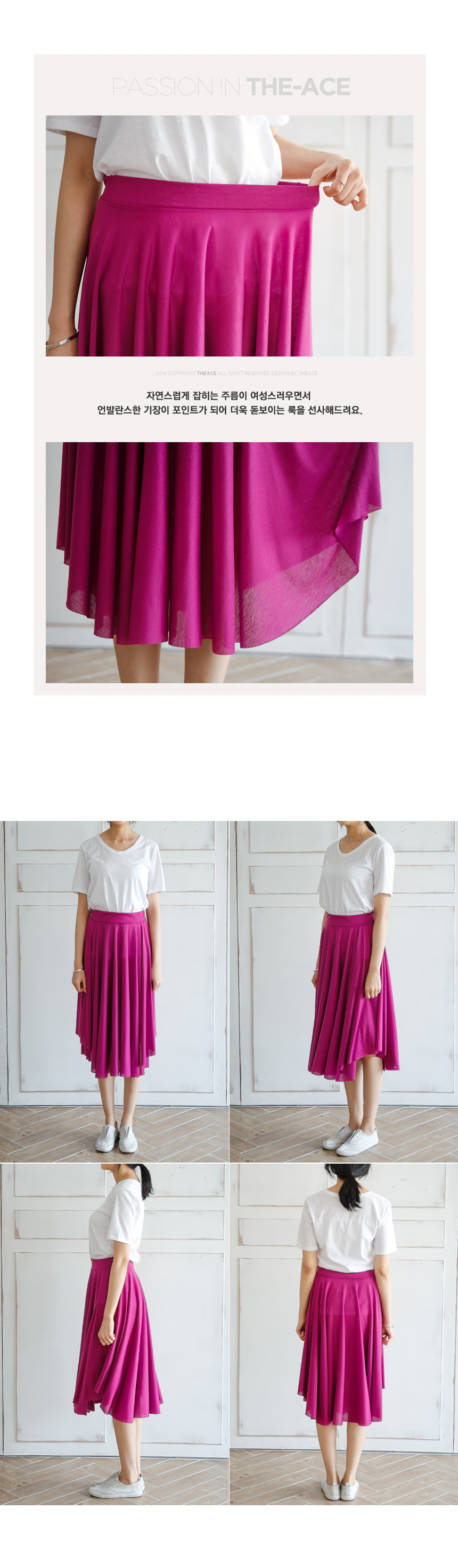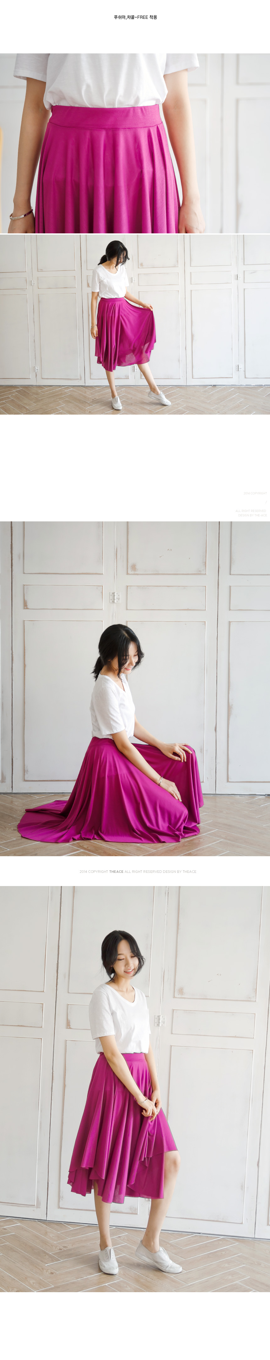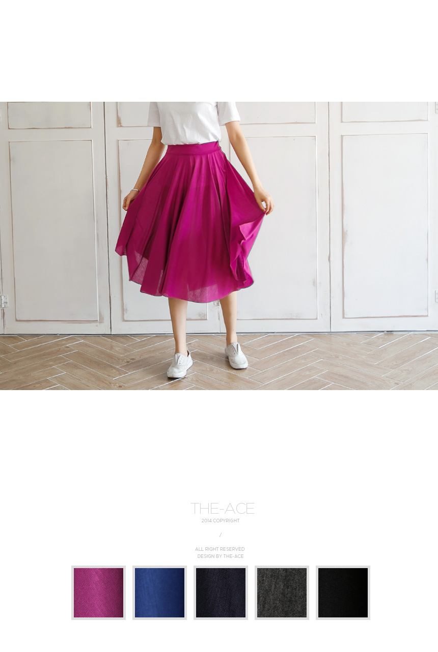 1. 넓직한 허리밴딩이라 편하고, 자연스레 잡히는 훌라인으로 여성스러운 와이드 밴딩 스커트예요