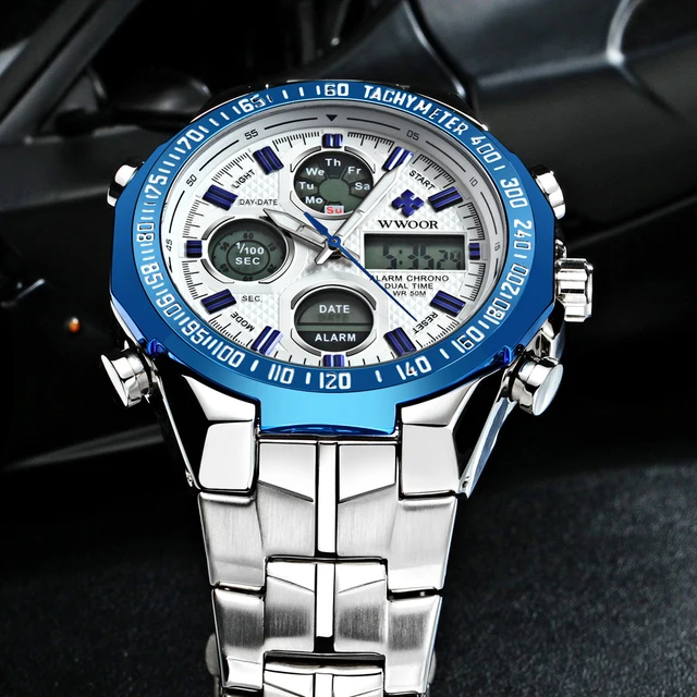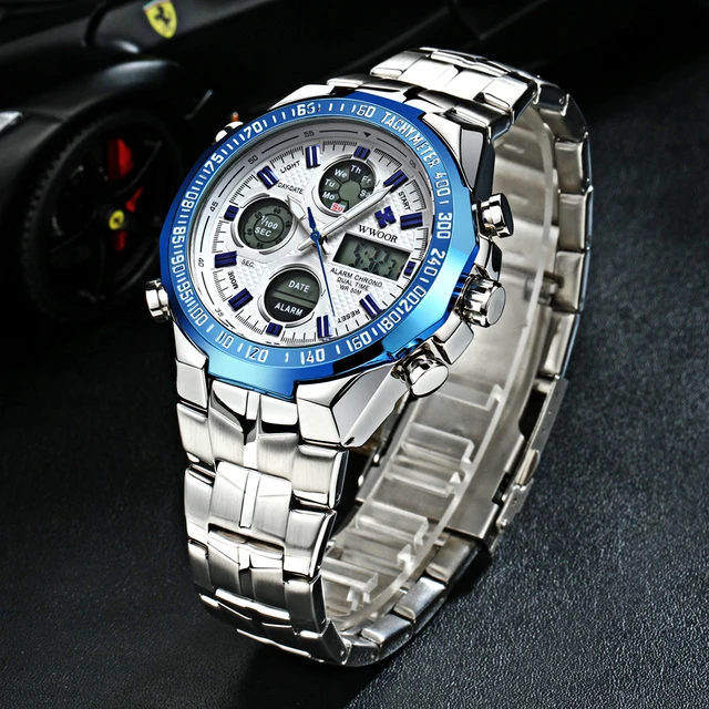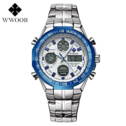 | [해외] 최고 브랜드 명품 남성 전체 스틸 시계 남성 석영 아날로그 디지털 시계 남성 스포츠 군사 시계 Relogio Masculino |