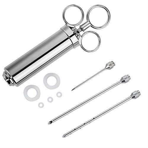 Marinade Meat Injector Stainless Steel Seasoning Syringe Kit, 2-OZ Large Capacity Barrel, 3 Marinade Needles for Turkey BBQ Grilling Roasting Cooking, 100% Food Grade Materials and Dishwasher Safe