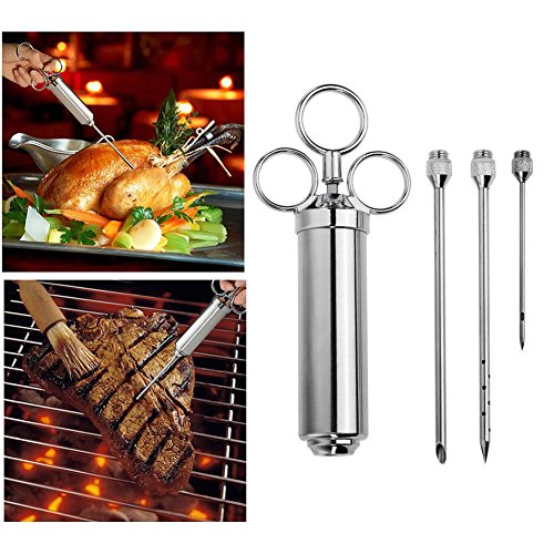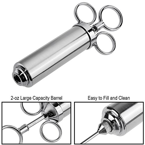 PRODUCT FEATURES: ?High quality Safe 304 stainless steel ?2-oz large capacity 3 marinade needles ?Easy to clean dishwasher safe ?Removable lid for easy filing ?Satisfaction warranty