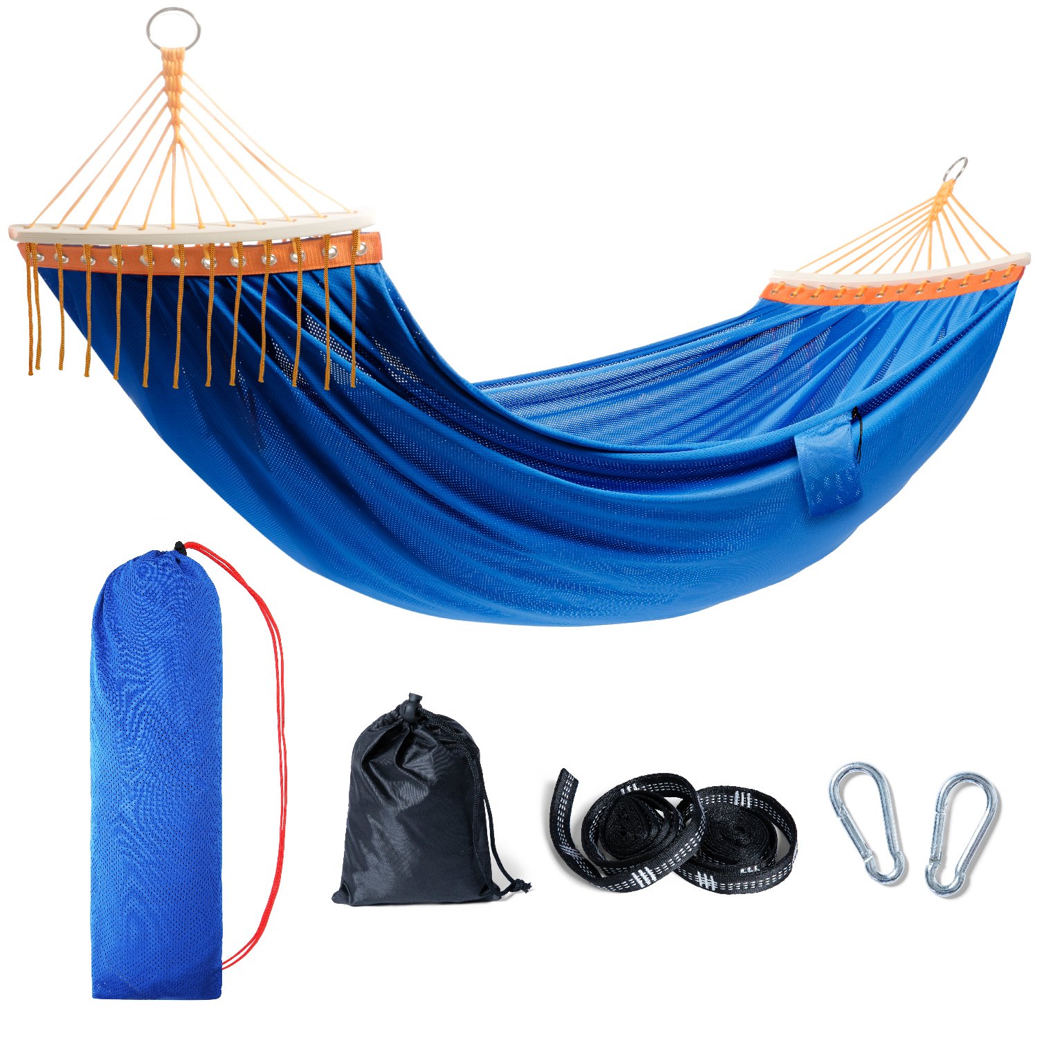 ハンモック:通気性良いメッシュ素材(ポリエステル100%)+ 木