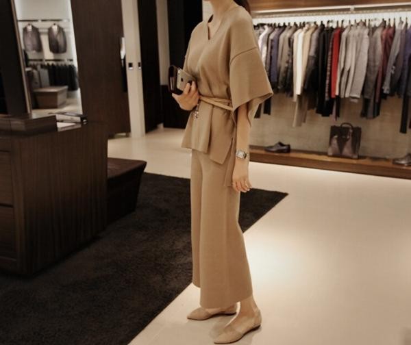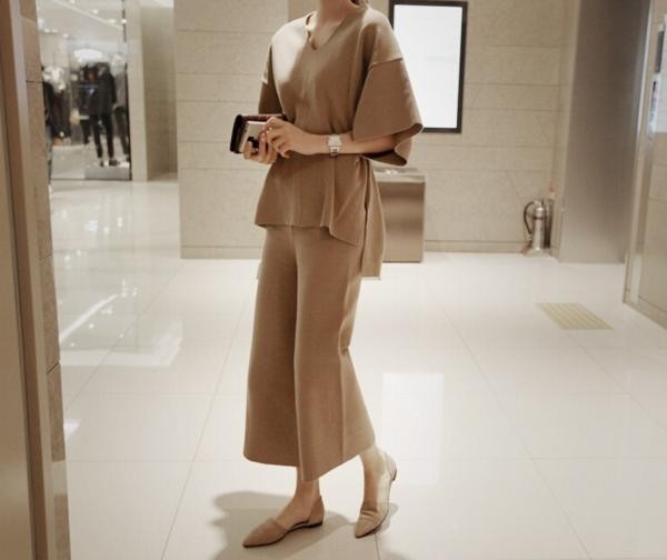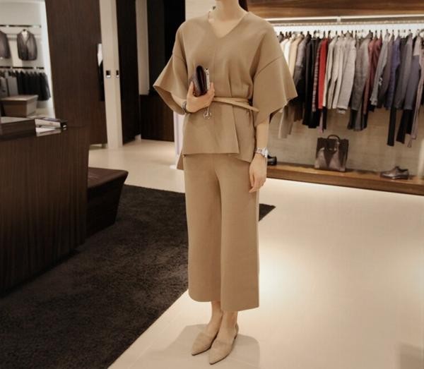 Vネック トップス ボトムス ニットスーツ セットアップ