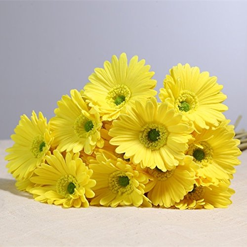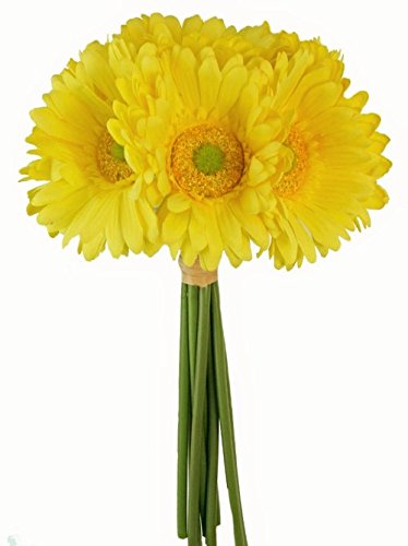 24" (2 ft) tall Real Touch Latex Gerbera Daisy Artificial Flowers for home decor, weddings, (6 stems) (Yellow)
