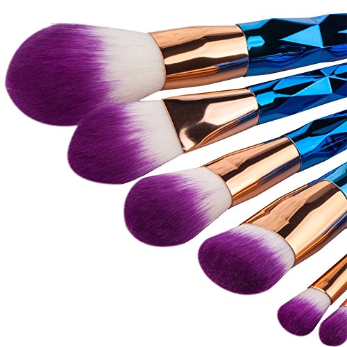 7pcs/Set Spiral Makeup Brushes Set Foundation Eyshadow Blusher Powder Blending Cosmetic Brush Kit Diamond Rainbow Handle (purple)