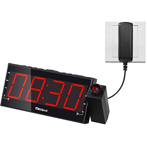 Projects the time on your wall or ceiling With 180-degree swivel,this convenient clock projects the time right onto your wall or ceiling for easy, stress free viewing - all you have to do is open your eyes.Turn on or off as needed. Charge While You Listen--or While You Sleep Your iPad, iPhone and your smartphone will charge while docked to help you avoid a drained battery,whether you're listening or not.When you wake up ready to go,your device will be,too. Not Too Faint,Not Too Bright--Just Right The high, medium,and low brightness settings ensure you can easily read the display during the day or night,without being distracted while trying to fall asleep. Built-in FM tuner lets you choose from a wide variety of radio, talk, and music programming. There's a digital scrolling tuner helping automatically scan for radio stations and quickly locate a strong signal radio station. Large,easy to read 1.8 inch LCD display Clearly view the time on the large,easy-to-read,backlit LCD display.Bright orange jumbo LEDs mean no squinting to read the time, even without your glasses. Wake to radio or buzzer. Buzzer Alarm starts off soft and then grows louder. Wake to Radio or Buzzer Choose to wake up to your favorite radio station,or to the traditional built-in buzzer.when you need a few extra minutes of sleep,take advantages of the convenient snooze and sleep functions. Battery Backup Function 2*AAA 1.5V batteries (not included) are required for back-up. This clock's battery backup ensures its time and alarm settings are maintained and remain active even through power outages.Rest assured knowing your morning routine won't be derailed by dysfunctional power lines.