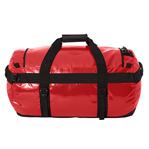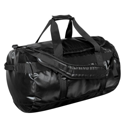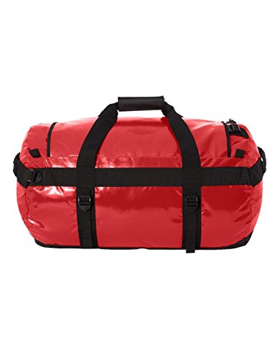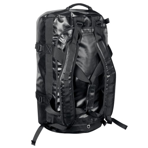 Product Description - 50/50 PVC/polyester - Double-gauge polypropylene webbing - Adjustable padded shoulder straps - Main compartment has zipper flap opening - Large inside mesh pocket with zipper - ID pocket on side - Two side handles - Adjustable side compression straps - Size: 24" x 15" x 15" 0