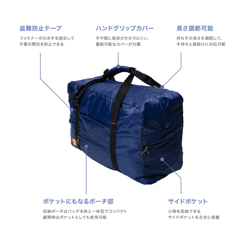 ●使わないときはコンパクトに畳んで持ち運べる、便利な折りたたみ式のバッグです。