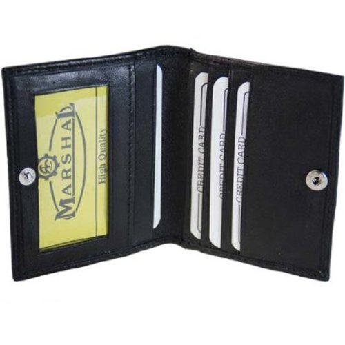 Binding : Apparel Product Description Marshal Leather Credit Card Case/Wallet ID Window; Material: Genuine Leather; Style: Bi-fold; SKU Code: #78; Size: 4" x 6.5"; Credit Card Slots: 4 ; I.D. Window: Yes; Other features: Snap button enclosure for safety; External pocket for credit card. 0