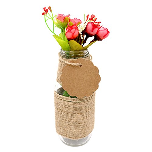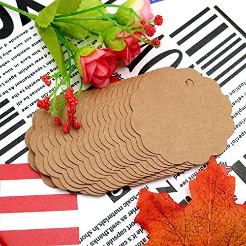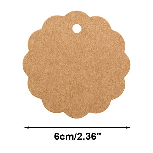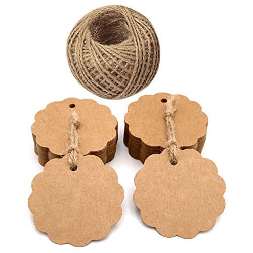 Valentine's Day Flower Tags,100 PCS Brown Flower Kraft Paper Gift Tags,Round Wedding Favor Kraft Hang Tags with 100 Feet Jute Twine