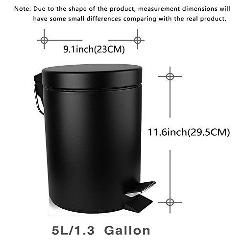 Anti-Fingerprint Carbon Steel Finish,Soft Close Lid,Removable Plastic Inner Wastebasket and Durable Steel Pedal