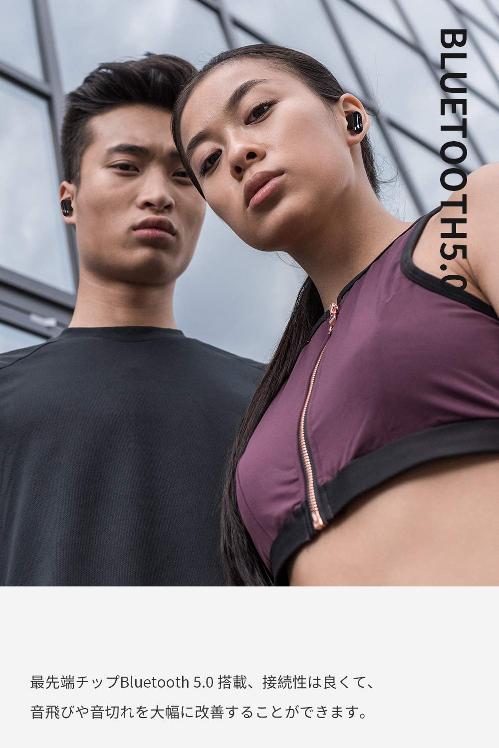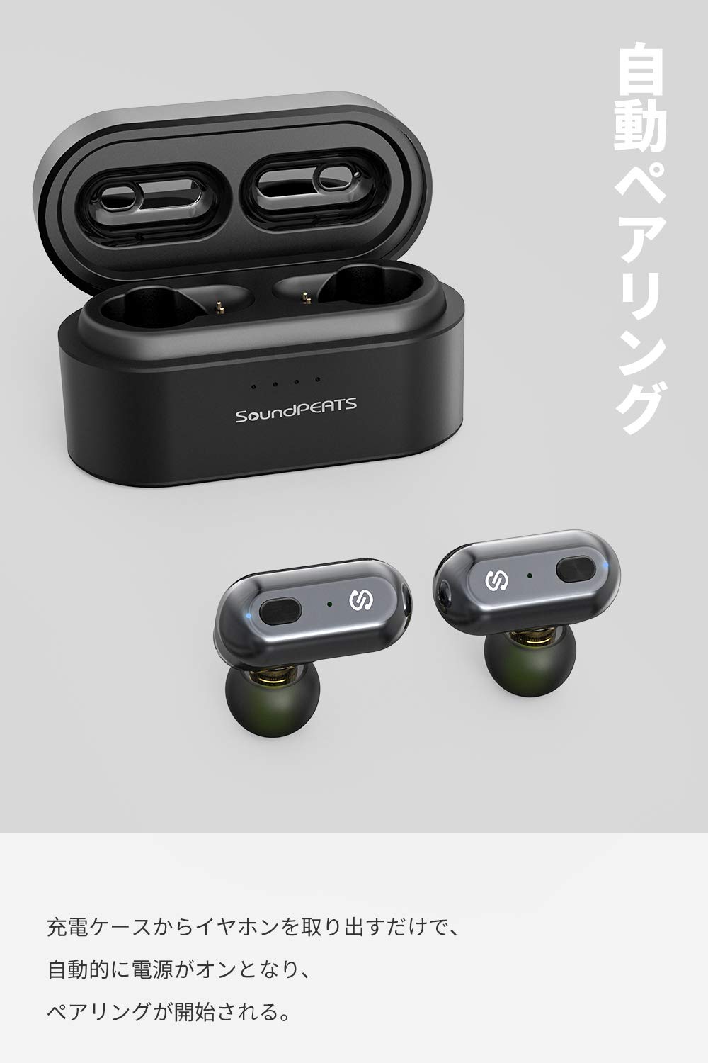 【改善版 高音質】ワイヤレスイヤホン デュアルドライバー SoundPEATS(サウンドピーツ) Truengine AAC対応 Bluetooth5.0 完全ワイヤレス イヤホン IPX6防水 自動ペアリング 左右分離型 両耳/片耳対応 マイク内蔵 両耳通話 音量調整可能 TWS ブルートゥース ヘッドホン フルワイヤレス ヘッドセット ブラック