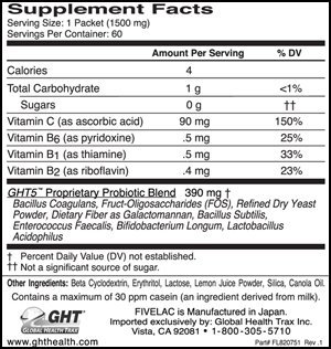 -. Binding : Health and Beauty -. Brand : Global Health Trax -. EAN : 0816663007702 -. Feature : New - Fresh Product / 60 Day Money Back Guarantee / Powerful natural probiotics formulation of five (5) potent microflora / Reduces candida, fungi and yeast overgrowth / Helps address digestion issues and those who tend to be irregular and off-balance -. IsAdultProduct : 0 -. Label : Global Health Trax GHT -. LegalDisclaimer : These statements have not been evaluated by the Food and Drug Administration. This product is not intended to diagnose, treat, cure, or prevent any disease. -. Manufacturer : Global Health Trax GHT -. MPN : FL05-053P -. PackageQuantity : 60 -. PartNumber : FL05-053P -. ProductGroup : Health and Beauty -. ProductTypeName : HEALTH_PERSONAL_CARE -. Publisher : Global Health Trax GHT -. Studio : Global Health Trax GHT -. Title : Fivelac Natural Probiotics Candida Solution with Acidophilus 5 Lac 60 Servings -. UPC : 816663007702