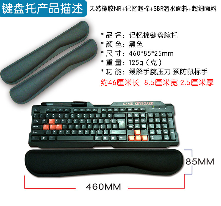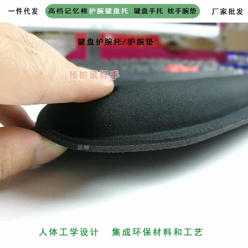 产品特征:内部填充记忆海绵,柔然舒适,具有很好的弹性,符合人体力学设计,舒缓了长期使用电脑者的手臂力。底部天然橡胶紧贴桌面,防滑性好,表面T布加潜水料,防水耐磨性较好,不易皱折、易洗、快干等特性。