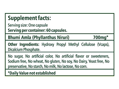 -. Title : High Potency Bhumi Amla (Phylanthus Niruri) - 60 vegetarian Capsules - 700 mg per capsule with Standardized extract of 5% Phyllanthins for Liver Cleanser, Gall Bladder support and Stone Breaker