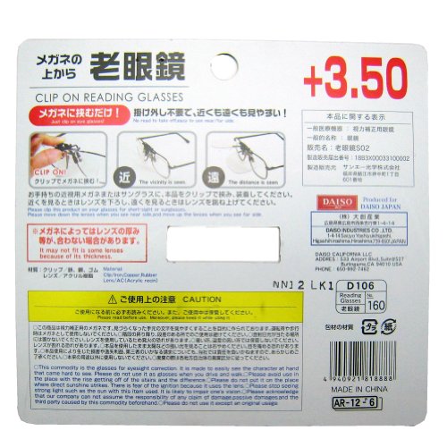 -. Title : Daiso Japan Optical Clip-on Flip-up Magnifying Reading Glasses +3.50 Diopter