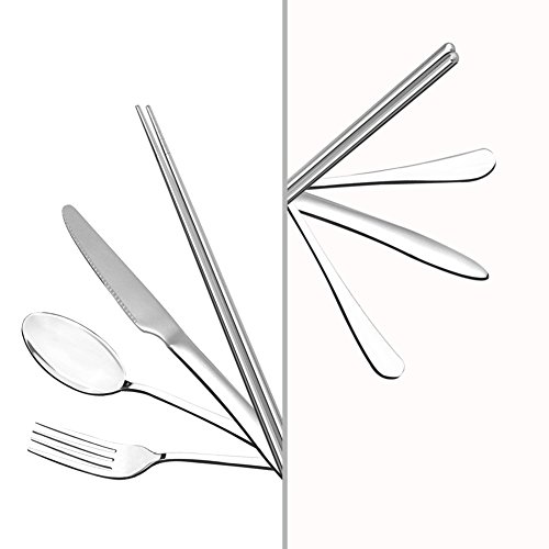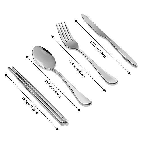 HIGH QUALITY MATERIAL: Made of 304 ASTM standard food used stainless steel, durable and reusable cutlery sets for travel or camping