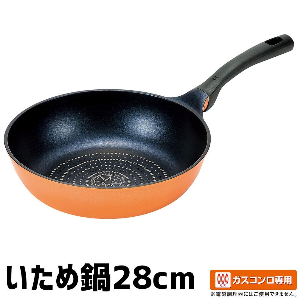 軽くて変形しにくい、アルミキャスト製のいため鍋です。内面は摩擦に強く、耐久性に優れたダイヤモンドコーティング!!また、ハンドルを止めるビスがないので、お手入れも楽々♪ガスコンロ専用です。 |