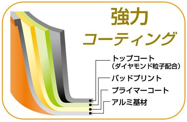 | 素材・材質 | 本体:アルミニウム合金(板厚:1.3~1.8mm) ハンドル:フェノール樹脂 表面加工/内面:フッ素樹脂塗膜加工(ダイヤモンド粒子配合)、外面:焼付塗装 |
