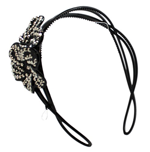 (Euro Fashion)/Pretend Play Dress-up/Beauty Fashion/DIRECT FROM USA/Euro Fashion Black Plastic Wire Tiara w?Sparkle Flower Duet