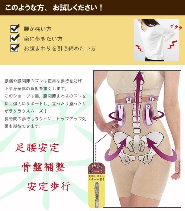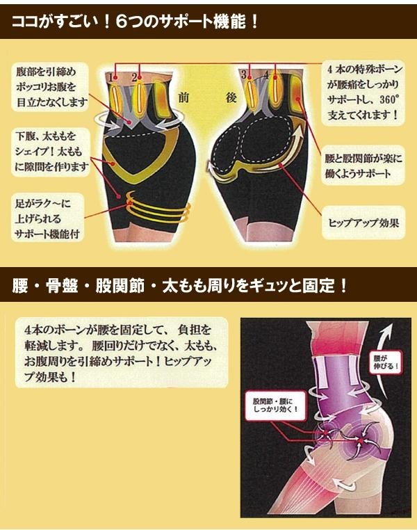 | 腰、股関節まわりのズレを抑え、強力にサポートし、立ったり座ったりがらくらくスムーズ!長時間の歩行もらく~に!ヒップアップ効果も期待できます。 |