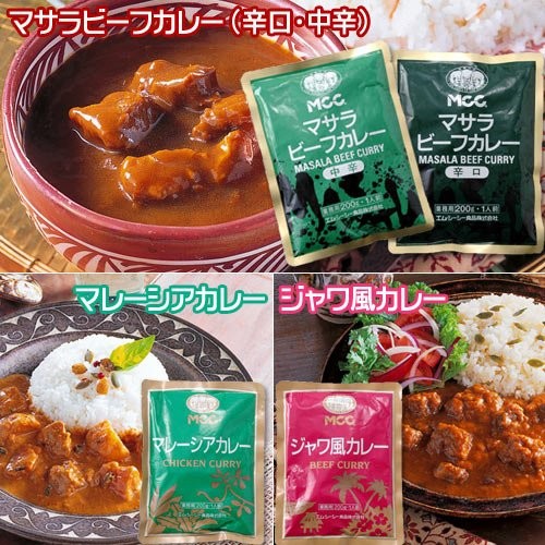 野菜(たまねぎ・にんじん・じゃがいも)・牛肉・チキンエキス・香辛料・小麦粉・ラード・食塩・ガーリック・グリーンチリピクルス・マンゴチャツネ・しょうが・マーガリン・ぶどう糖・大豆油・たん白加水分解物・酵母エキス・調味料(アミノ酸等)(その他乳成分由来原材料を含む)